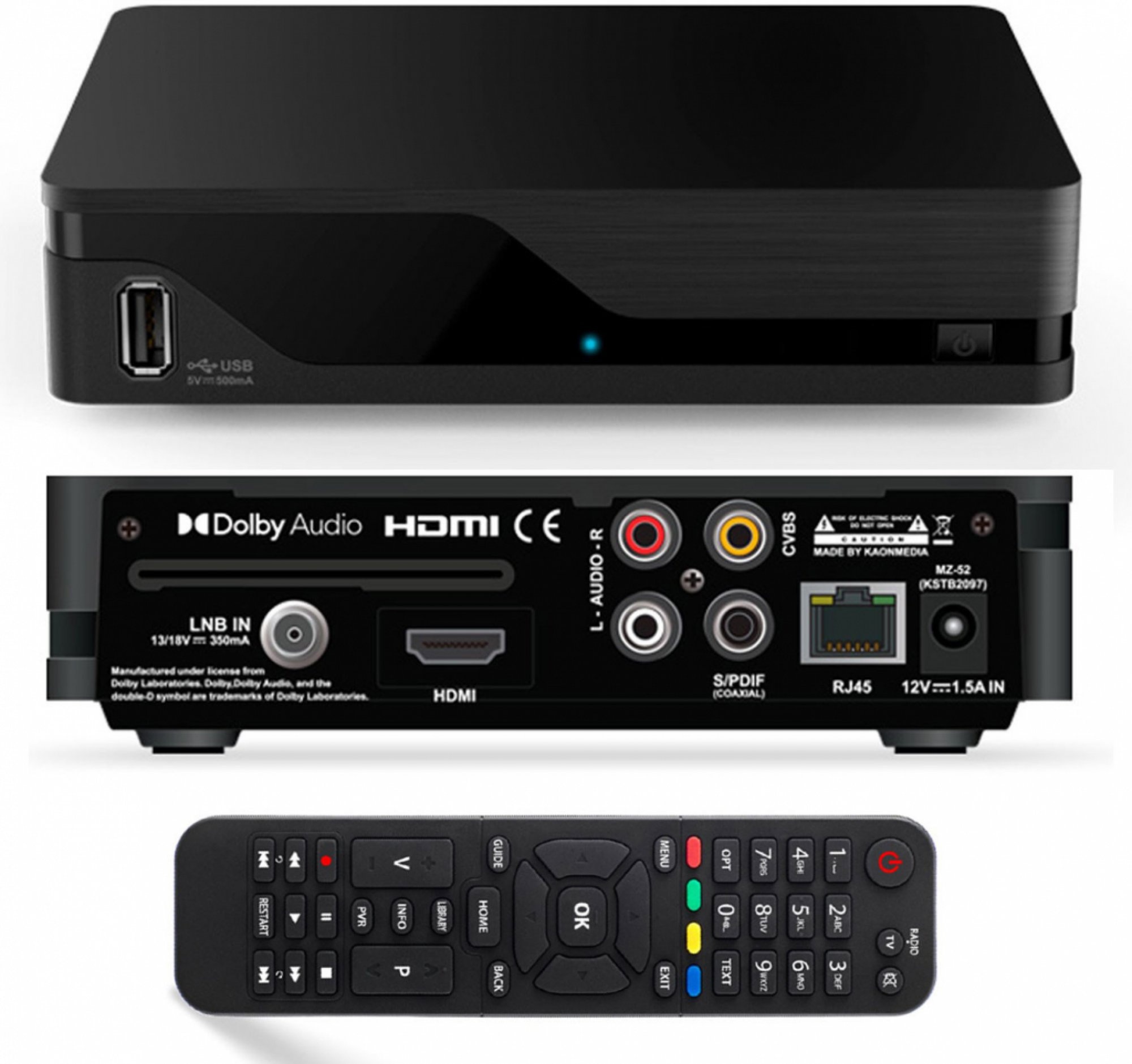 kombinovaný prijímač • DVB-T2/C/S2 • H.265/HEVC • obraz až 4K • Conax čítačka • 2× USB • HDMI • RJ-45 • S/PDIF • Wi-Fi Ready (po dokúpení donglu) • programový sprievodca EPG •...